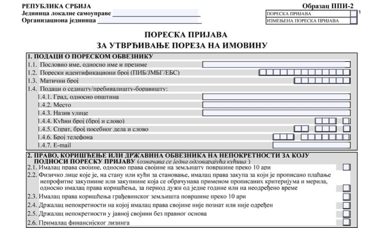 PPI 2 obrazac se koristi za prijavu poreza na imovinu kod lokalne poreske administracije.